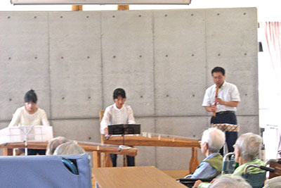 歌を聴いたり、紙芝居、映画鑑賞などで楽しんでいただいてます。